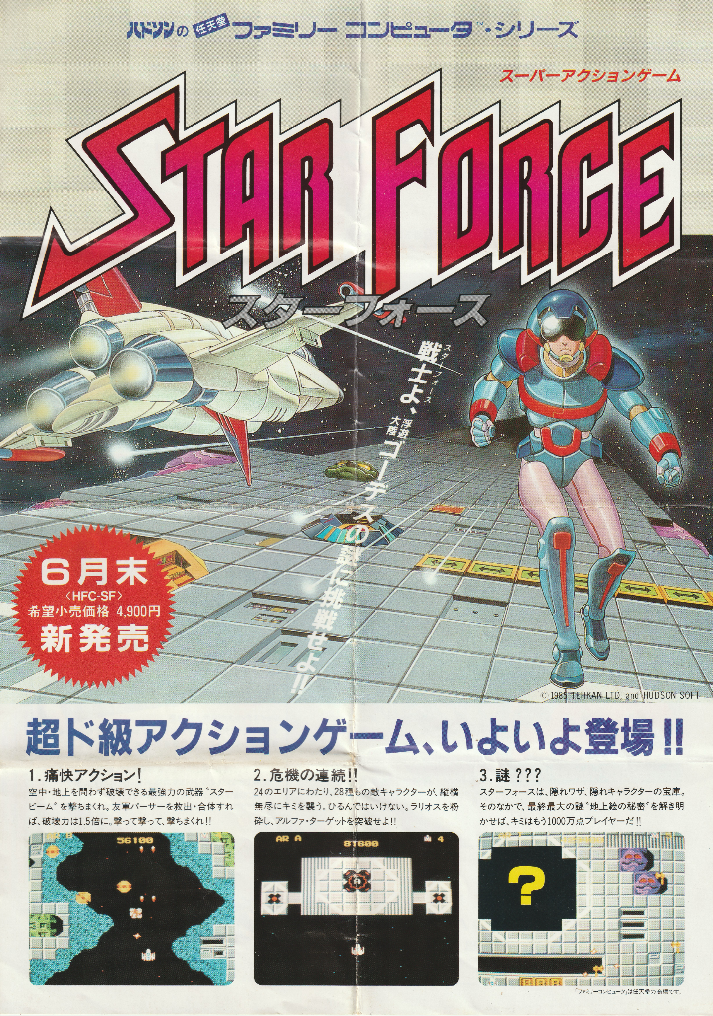 【チラシ】スターフォース レトロゲームチラシ X Facebook はてブ Pocket LINE コピー 2025.08.042025.08.20 ハドソンの「スターフォース」のチラシです。まだゲームのカテゴライズがあやふやで「スーパーアクションゲーム」として紹介されています。 「ロードランナー」と「チャンピオンシップロードランナー」はめちゃくちゃやりました。「バンゲリングベイ」は友達の兄に土下座までして借りたけど、あまりにも面白くなくて、がっかりした思い出があります。